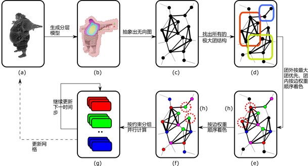 We propose a new clique based weighted mixed coloring decoupling scheme to reduce the error caused by par-allel Gauss Seidel iterations in dense systems such as bone driven secondary deformations. The coloring algo-rithm mainly focuses on the clique structure in the graph, that is, the global priority is given to large clique structure, and the local consideration is given to load balancing. Compared with previous work, our scheme has better decoupling effect for dense physical systems with a large number of coupling, which can make the GPU parallel solver have higher computational performance and better accuracy.